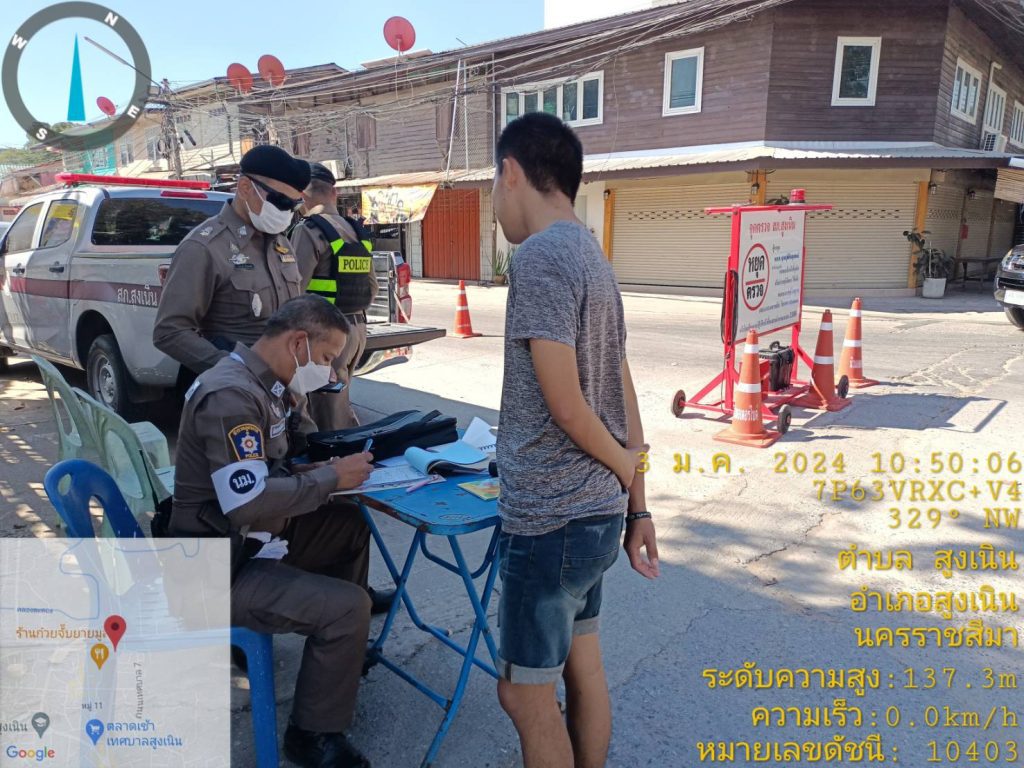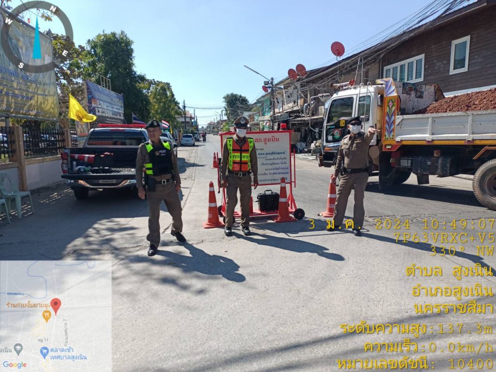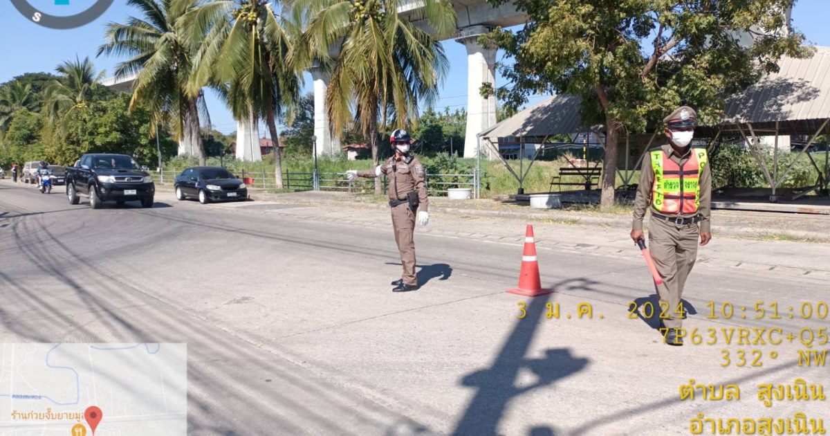 วันที่ 3 ม.ค.2567 เวลา 10.00 – 12.00 น. ภายใต้การอำนวยการของ พ.ต.อ.ศุภวัชร อังคสยาวัฒน์ ผกก.สภ.สูงเนิน ,พ.ต.ท.พิทักษ์ วงศ์อาจ รอง ผกก.ป.สภ.สูงเนิน มอบหมายให้ พ.ต.ต.ญาณวุฒิ ชินทุมพงษ์ สวป.สภ.สูงเนิน พร้อมสายตรวจรถยนต์ /จราจร /จักรยานยนต์ ตั้งจุดตรวจกวดขันวินัยจราจร ณ.บริเวณถนนสามแยกหน้าที่ว่าการอำเภอสูงเนิน ต.สูงเนิน อ.สูงเนิน จ.นครราชสีมา