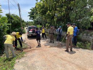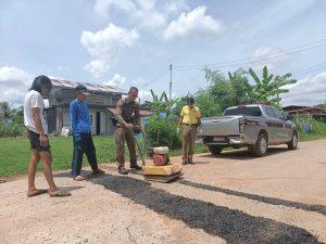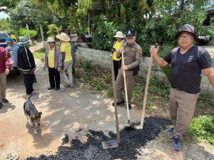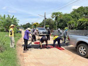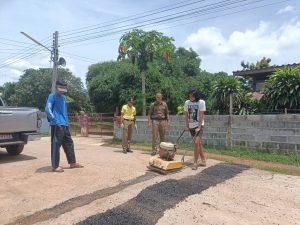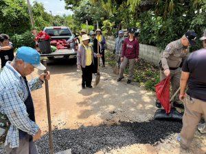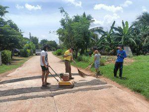 -เวลา 09.30 -15.00 น.ร่วมผู้นำชุมชน คณะกรรมการคุ้ม,อสม.และผู้เข้ารับการบำบัดปรับปรุงพื้นผิวถนนภายในหมู่บ้านเพื่อป้องกันอุบัติเหตุการจราจร