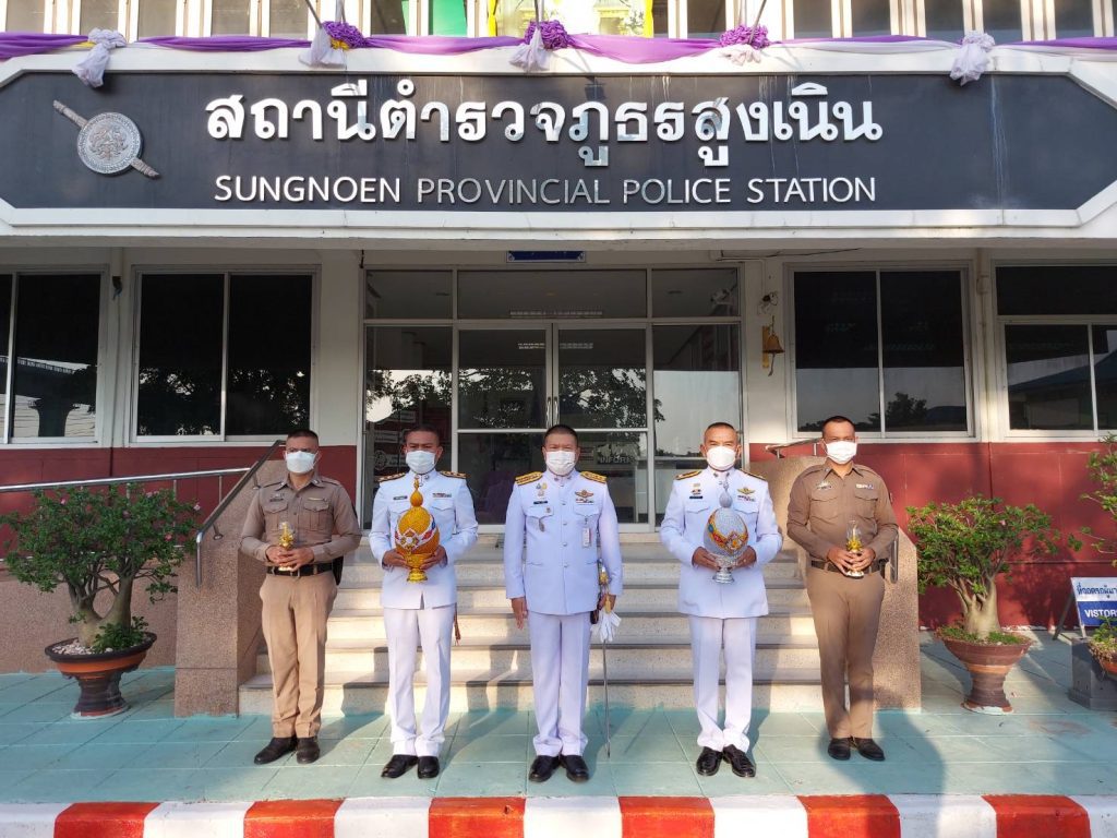 วันนี้ 3 มิ.ย.2566 เวลา 18.00 น. พ.ต.อ.วทัญญู รุ่งรัศมี ผกก.สภ.สูงเนิน ,ร.ต.อ.ชูศักดิ์ รัตนพันธ์ รอง สวป.สภ.สูงเนิน ร.ต.ต.สุนทร กะการดี รอง สว.(ป.)สภ.สูงเนิน พร้อมข้าราชการตำรวจ สภ.สูงเนิน ร่วมพิธีถวายราชสักการะและวางพานพุ่ม จุดเทียนชัยถวายพระพร เนื่องในโอกาสวันเฉลิมพระชนมพรรษา สมเด็จพระนางเจ้าสุทิดา พัชรสุธาพิมลลักษณ พระบรมราชินี ณ ที่ว่าการอำเภอสูงเนิน