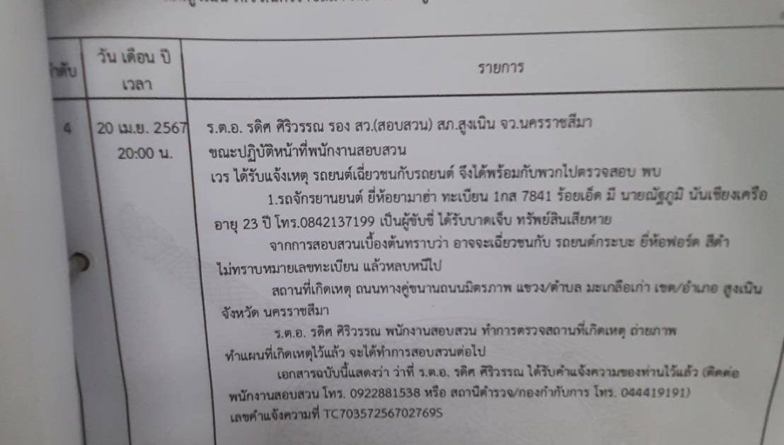 กระบะคลั่งไล่บี้ หนุ่มบิ๊กไบค์ ขับชนลงข้างทาง โชคดีคนขับรอดปาฏิหาริย์ วอน ตร.เร่งจับกุม พื้นที่ สภ.สูงเนิน จว.นครราสีมา