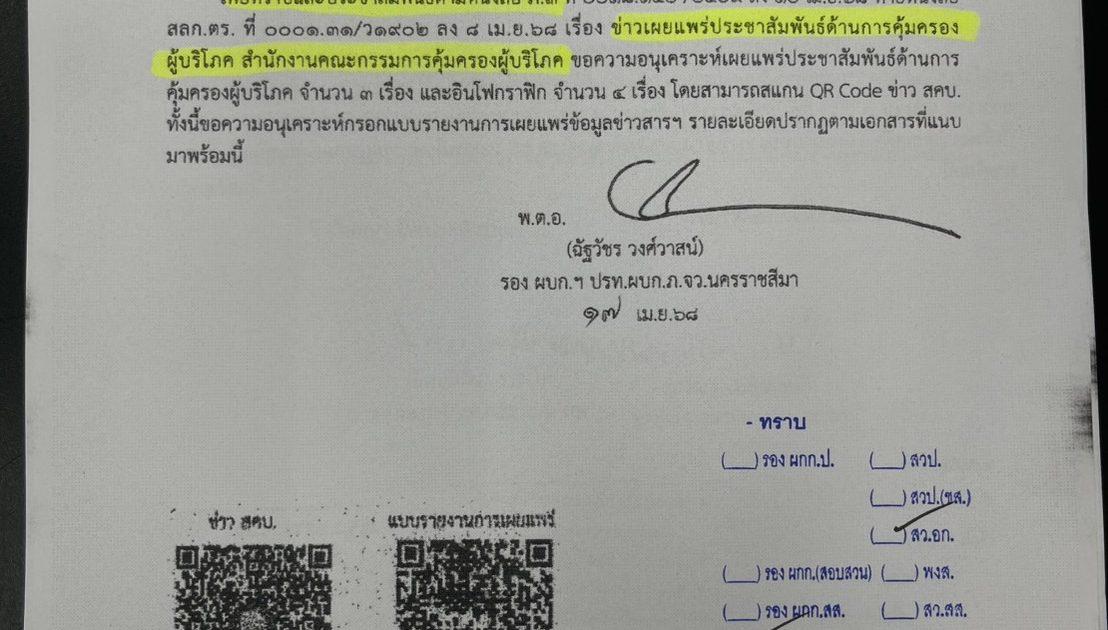 สำนักงานคณะกรรมการคุ้มครองผู้บริโภค อความอนุเคราะห์เผยแพร่ประชาสัมพันธ์ด้านการคุ้มครองผู้บริโภค จำนวน ๓ เรื่อง และ อินโฟกราฟิก จำนวน ๔ เรื่อง ที่มีประโยชน์กับประชาชน