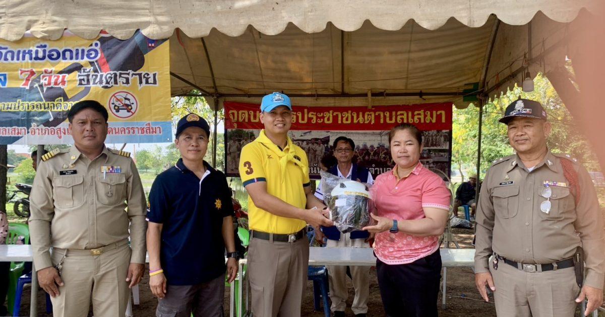 วันนี้ 16 เม.ย. 68 เวลา 10.30 น. ข้าราชการตำรวจจิตอาสาและชุดเคลื่อนที่เร็ว ได้มอบหมวกนิรภัยตามโครงการจิตอาสาจราจร รณรงค์การขับขี่ปลอดภัย สวมหมวกนิรภัย เพื่อลดอุบัติเหตุจราจรทางบก ในช่วงเทศกาลสงกรานต์ พ.ศ. 2568 จำนวน 2 ใบแก่ประชาชน ณ จุดบริการประชาชนตำบลเสมา ต.สูงเนิน อ.สูงเนิน จ.นครราชสีมา