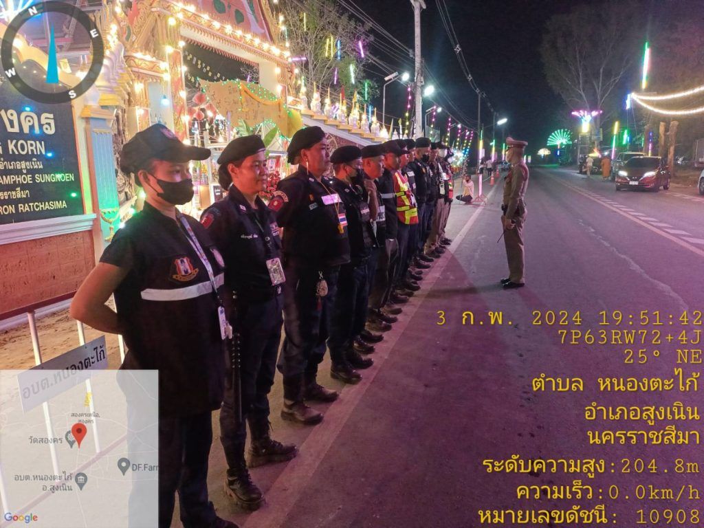วันที่ 3 ก.พ.2567 เวลาประมาณ 20.30 น.ภายใต้การอำนวยการของ พ.ต.อ.ศุภวัชร อังคสยาวัฒน์ ผกก.สภ.สูงเนิน , พ.ต.ท.พิทักษ์ วงศ์อาจ รอง ผกก.ป.ฯ,พ.ต.ท.ญาณวุฒิ ชินทุมพงษ์ สวป.ฯ มอบหมายให้ ร.ต.อ.ชูศักดิ์ รัตนพันธ์ รอง สวป.ฯ พร้อมด้วย ร.ต.อ.ณรงค์เดช โถกสูงเนิน รอง สวป.ฯ ปล่อยแถว ชี้แจงภารกิจเจ้าหน้าที่รักษาความสงบเรียบร้อย งานมหรสพ วัดสองคร ต.หนองตะไก้ อ.สูงเนิน จ.นครราชสีมา โดยได้กำชับการปฏิบัติ ดังนี้