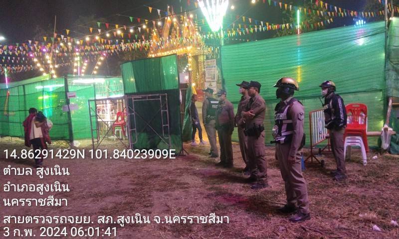 วันที่ 2 ก.พ.2567 เวลาประมาณ 20.30 น.พ.ต.อ.ศุภวัชร อังคสยาวัฒน์ ผกก.สภ.สูงเนิน ได้มอบหมายให้ พ.ต.ท.พิทักษ์ วงศ์อาจ รอง ผกก.ป.สภ.สูงเนิน ปล่อยแถว ชี้แจงภารกิจเจ้าหน้าที่รักษาความสงบเรียบร้อย งานมหรสพหมอลำ(คำผุนร่วมมิตร) ณ บริเวณลานหน้าวัดสุขาวดี ต.สูงเนิน อ.สูงเนิน จ.นครราชสีมา กำลังพลที่ปฏิบัติหน้าที่ ประกอบด้วย เจ้าหน้าที่ตำรวจงานป้องกันปราบปราม-จราจร 15 นาย,ชุดสืบสวน 3 นาย, จนท.สห. 10 นาย , ฝ่ายปกครอง 10 นาย , อาสาสมัครตำรวจบ้าน 10 คน โดยได้กำชับการปฏิบัติ ดังนี้