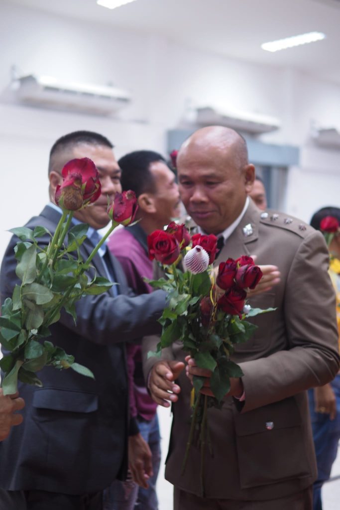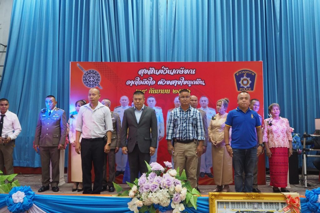 เมื่อวันที่ 29 ก.ย.2566 เวลา16.30-24.00 น.พ.ต.ท.วทัญญู รุ่งรัศมี ผกก.สภ.สูงเนิน พร้อมข้าราชการตำรวจ สภ.สูงเนินและครอบครัว ได้ร่วมกันจัดงานแสดงมุทิตาจิตและงานเลี้ยงสังสรรค์ในยโอกาสเกษียณอายุราชการประจำปี 2566 ของข้าราขการตำรวจ สภ.สูงเนิน จำนวน 4 นาย คือ 1.ร.ต.อ.กัณฑ์เอนก โหม่งสูงเนิน รอง สว.(สส.)สภ.สูงเนิน ,2.ร.ต.อ.ประสิทธิ์ ตะนัง รอง สว.(ป.)สภ.สูงเนิน ,3.ร.ต.อ.ศักดิ์สิทธิ์ ตะนอพรม รอง สว.(สส.)สภ.สูงเนิน และ 4.ร.ต.อ.ถนอม สิทธิขุนทด รอง สว.(สส.)สภ.สูงเนิน ณ หอประชุมอำเภอสูงเนิน มี กต.ตร.สภ.สูงเนิน พ่อค้า ประชาชน มาร่วมแสดงความยินดีแก่ข้าราการตำรวจทั้ง 4 นายจำนวนมาก