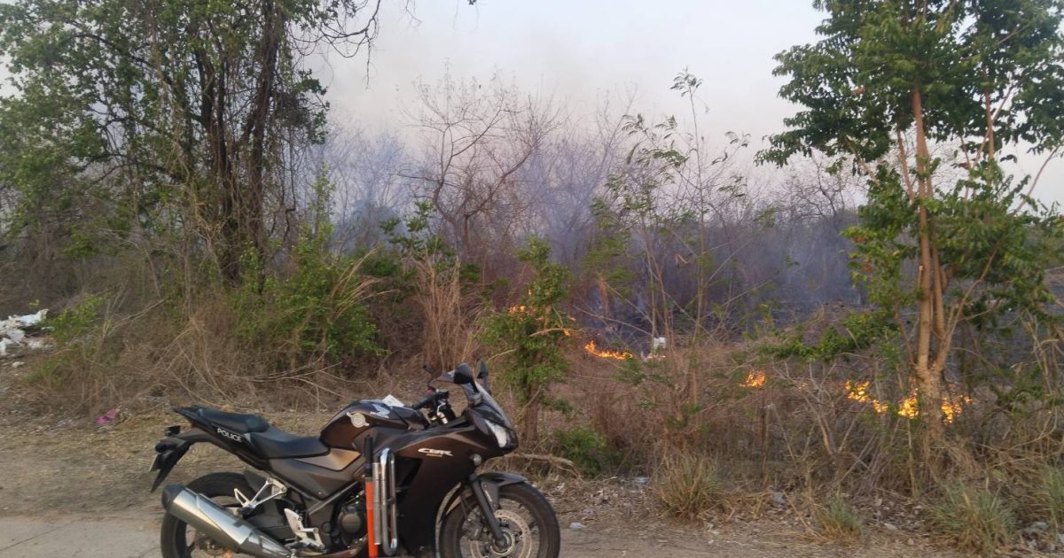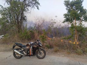 จยย.011(เขต2) ว. 4 ตรวจสอบเหตุเพลิงไหม้ป่าหลังศูนย์พัฒนาอุตสาหกรรม ภาค 6 เกรงว่าจะลุกลามจึงได้แจ้งรถดับเพลิงเทศบาลสูงเนินมาดับไฟเวลานี้