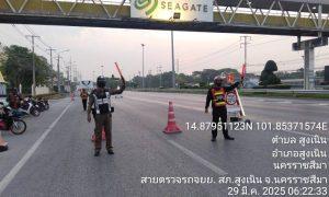 จยย.011(เขต3) ว. 4 ว. 10 ถนนมิตรภาพอำนวยความสะดวกด้านการจราจรหน้าบริษัท ซีเกท แต่เวลานี้