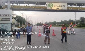 จยย.011(เขต3) ว. 4 ว. 10 อำนวยความสะดวกด้านการจราจรหน้าบริษัท ซีเกท การจราจรเบาบางรถสามารถเคลื่อนตัวได้ดี