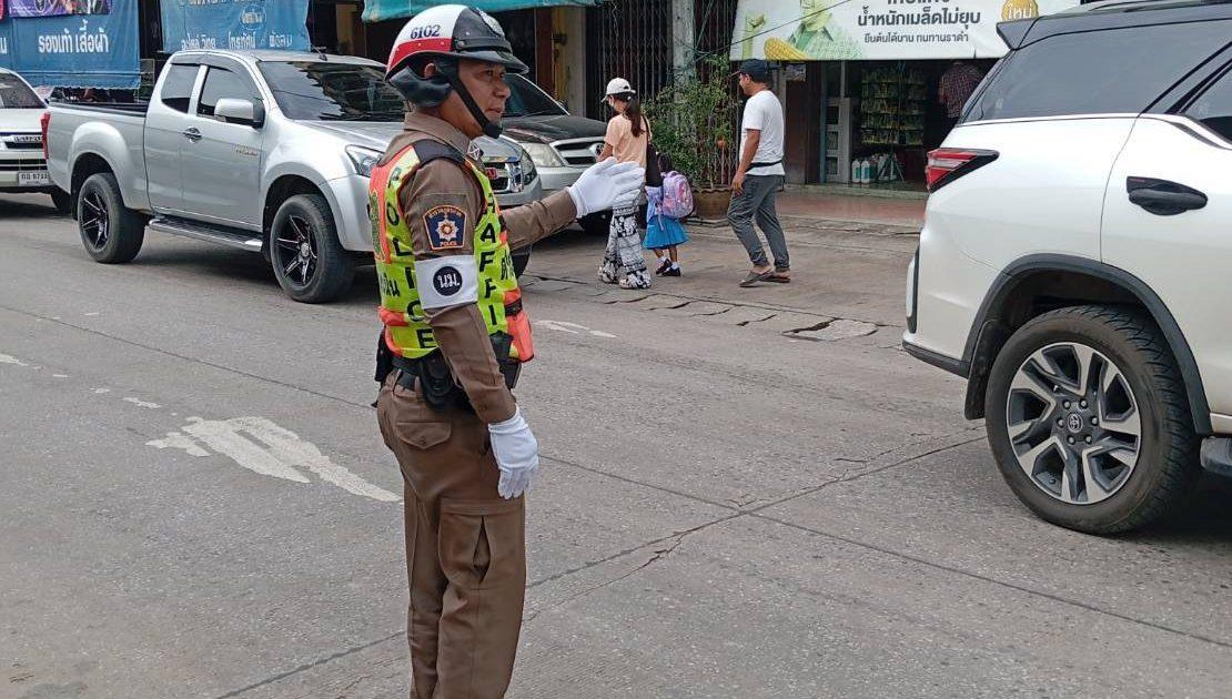 จราจร6102อำนวยความสะดวกการจราจรหน้าโรงเรียนอนุบาลจุรีพันธ์