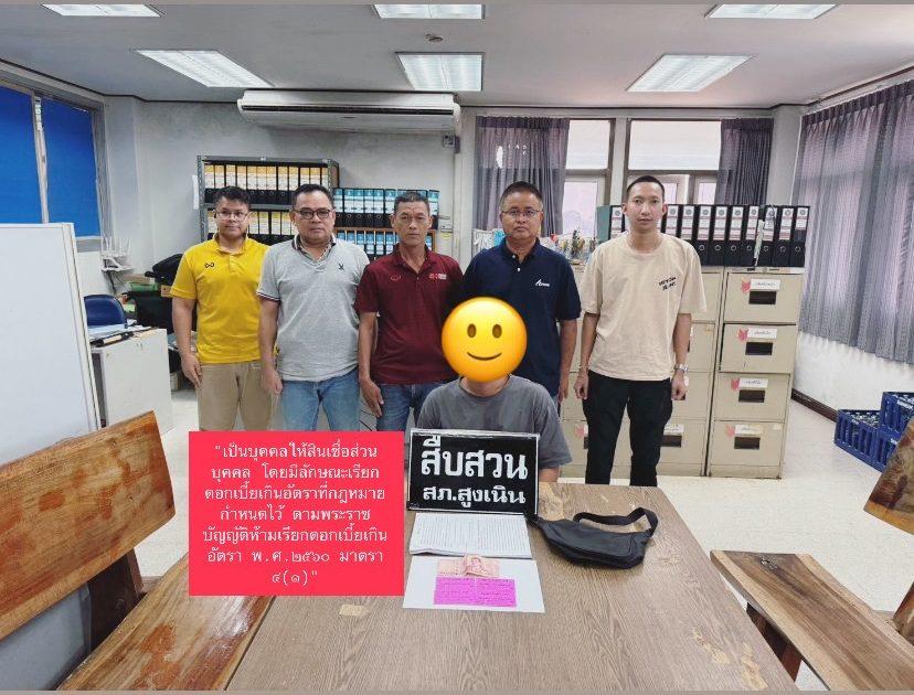 🛑1️⃣ จับกุมข้อหา “เป็นบุคคลให้สินเชื่อส่วนบุคคล โดยมีลักษณะเรียกดอกเบี้ยเกินอัตราที่กฎหมายกำหนดไว้ ตามพระราชบัญญัติห้ามเรียกดอกเบี้ยเกินอัตรา พ.ศ.2560 มาตรา 4(1)” จำนวน 1 ราย 1 คน