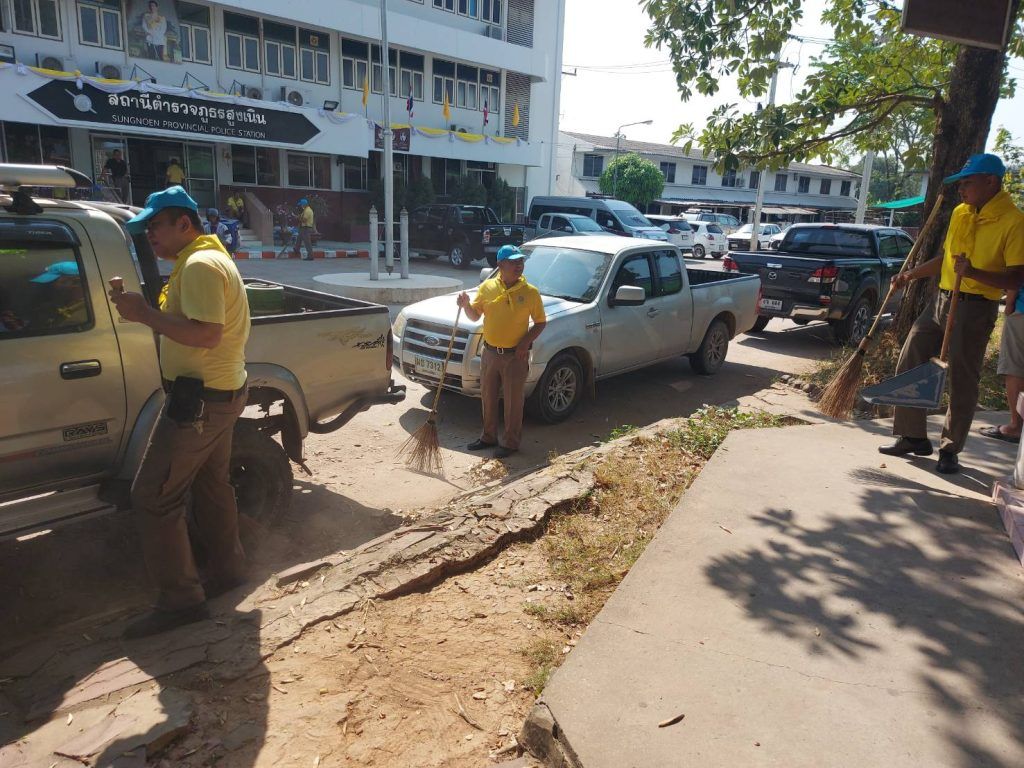 วันที่ 6 มี.ค.2567 เวลา 10.00 น. ร.ต.ท.นรินทร์ มีสูงเนิน รอง สว.(ป.)สภ.สูงเนิน พร้อมด้วยข้าราชการตำรวจจิตอาสา สภ.สูงเนิน ได้ทำกิจกรรมกิจอาสา ทำความสะอาดบริเวณหน้าสถานีตำรวจภูธรสูงเนิน