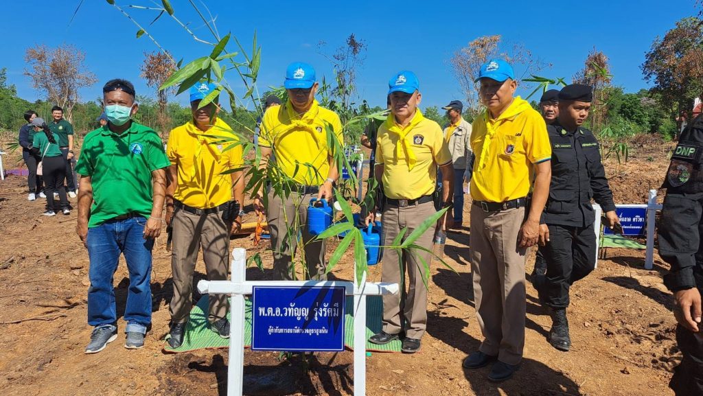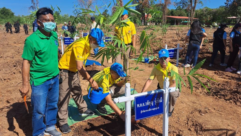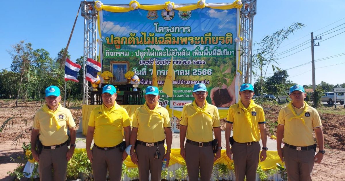 วันที่ 7 ก.ค.2566 เวลา 09.00 น. พ.ต.อ.วทัญญู รุ่งรัศมี ผกก.สภ.สูงเนิน มอบหมายให้ พ.ต.ท.วศิลาวุธ วงศ์ประชา สว.อก.สภ.สูงเนิน พร้อมข้าราชการตำรวจจิตอาสา สภ.สูงเนิน รวม 10 นาย เข้าร่วมกิจกรรมโครงการปลูกไผ่และไม้ยืนต้น เพิ่มพื้นที่สีเขียว ร่วมกับหน่วยงานราชการในพื้นที่ อ.สูงเนิน ณ พื้นที่สาธารณประโยชน์ บ้านสองครเหนือ หมู่ที่ 10 ตำบลหนองตะไก้ อำเภอสูงเนิน จังหวัดนครราชสีมา