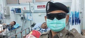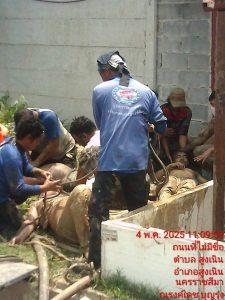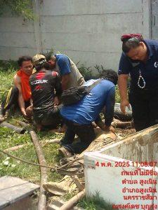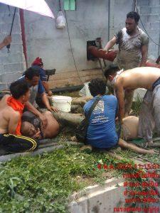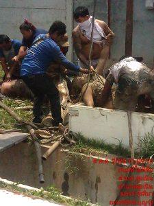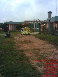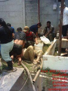 สน.60 ชุดจราจร เข้าตรวจสอบจากการรับแจ้งของมูลนิธิสว่างแสงธรรม ชาวพม่าตกลงในบ่อไบโอแก็สโรงงานแหลมทอง ขณะที่กำลังลงเข้าไปทำความสะอาดภายในบ่อซึ่งลึกประมาณ 30 เมตร ภายในมีน้ำสกปรกและมีกลิ่นของแก๊ส จากการตรวจสอบเป็นชายชาวพม่า 3 ราย / มูลนิธิสว่างแสงธรรมนำส่ง รพ.สูงเนิน / ลักษณะอาการตามภาพถ่าย