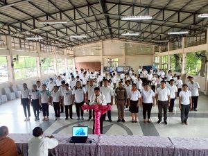 วันนี้(26 มิ.ย.68)เวลา 11.00-12.00 น. พ.ต.อ.อิษฏ์ บุญญะฤทธิ์ ผกก.สภ.สูงเนิน พ.ต.ท.พิทักษ์ วงศ์อาจ รอง ผกก.ป.สภ.สูงเนิน มอบหมายให้ พ.ต.ต.ภูมิรัฐ พิสุทธิ์คุณวุธน์ สวป.(ชส.)สภ.สูงเนิน ร.ต.อ.อรรถสิทธิ์ พฤกษามาลา ร.ต.อ.หญิง ฉวีวรรณ แจ้งสูงเนิน ร.ต.ท.เสรี วงศ์สูงเนิน ร.ต.ท.สมบัติ อัคเสริญ ร.ต.ต.จุมพล สุวรรณปักษ์ พร้อมชุดปฏิบัติการชุมชนตำบลยั่งยืน (ชมส.สภ.สูงเนิน) บรรยายให้ความรู้ ตามโครงการรณรงค์ป้องกันและแก้ไขปัญหายาเสพติด ประจำปีงบประมาณ 2568 (เนื่องในวันต่อต้านยาเสพติดโลก) ณ โรงเรียนโค้งยางวิทยา จัดขึ้นโดยองค์การบริหารส่วนตำบลโค้งยาง ร่วมกับสถานีตำรวจภูธรสูงเนิน โดยมีนายณรงค์ เตี้ยงสูงเนิน นายกองค์การบริหารส่วนตำบลโค้งยาง ประธานในพิธี / คณะครู ,นักเรียน / ผู้นำชุมชนร่วมโครงการ จำนวน150 คน