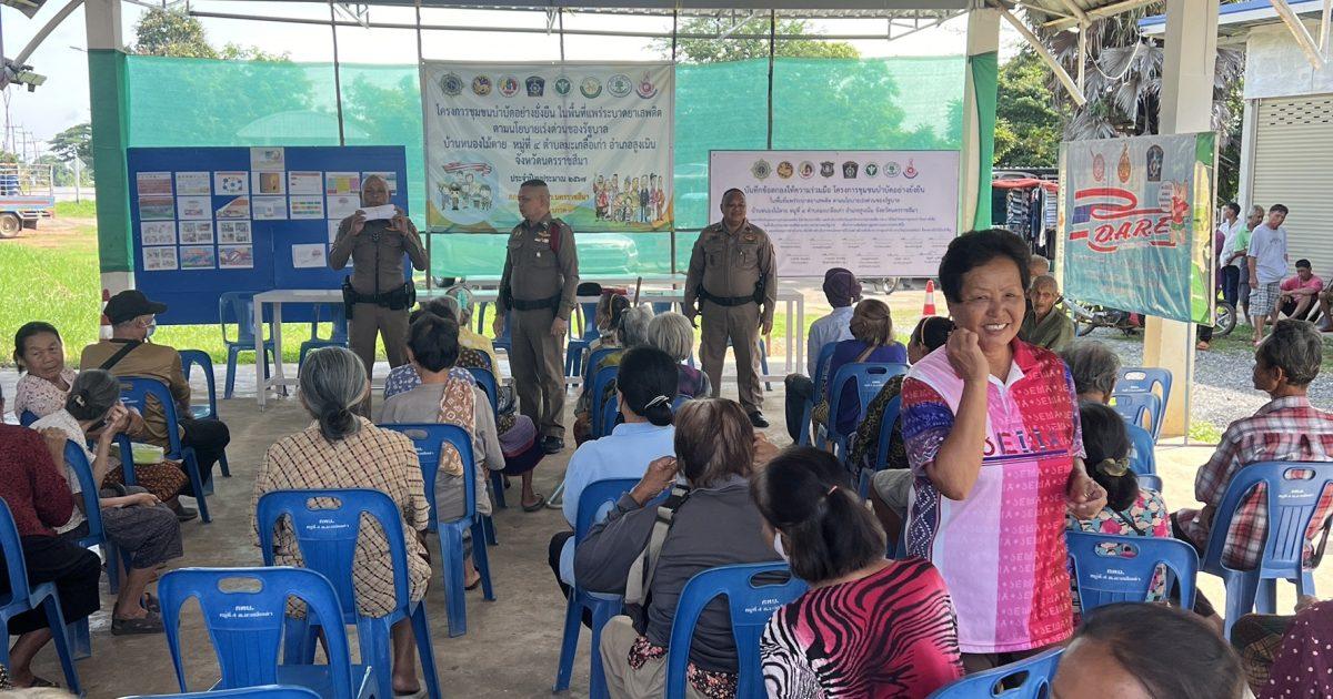 ชุดปฏิบัติการชุมชนยั่งยืนฯ – ผู้นำหมู่บ้าน/อสม./ปชช. บ้านหนองไม้ตาย ร่วมทำกิจกรรม แจกซองผ้าป่าแจ้งเบาะแส โครงการชุมชนบำบัดอย่างยั่งยืนฯ
