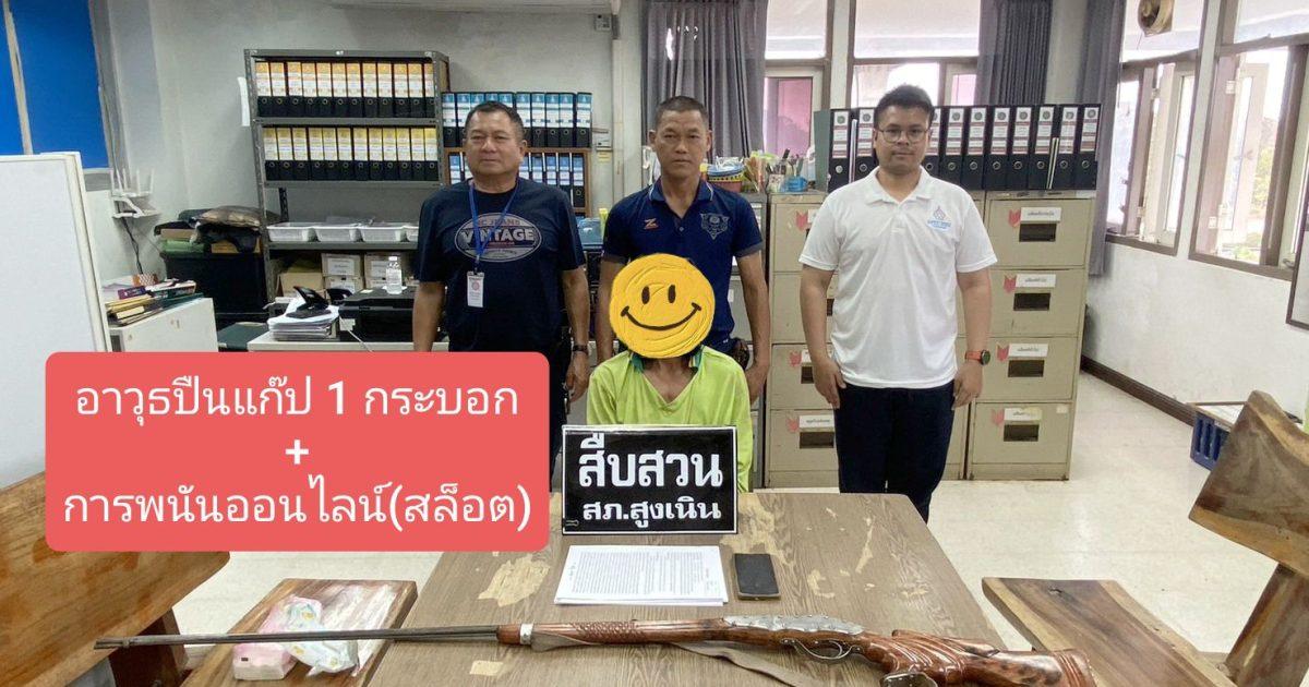 🔶 1.จับกุมข้อหา “มีอาวุธปืนไว้ในครอบครองโดยไม่ได้รับอนุญาต และลักลอบเล่นการพนัน(สล็อต)ออนไลน์ พนันเอาทรัพย์สินกันโดยผิดกฎหมาย” จำนวน 1 ราย 1 คน