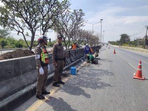 วันนี้ 4 ก.พ.2569 เวลา 14.00 น. ภายใต้การอำนวยการของ พ.ต.อ.อิษฏ์ บุญญะฤทธิ์ ผกก.สภ.สูงเนิน มอบหมายให้ พ.ต.ท.เสรี อินคง สวป.สภ.สูงเนิน ดำเนินการตรวจสอบจุดซ่อมสร้างถนนมิตรภาพ หลัก กม.ที่ 110+362 – 113+183.50 การก่อสร้างแท่นปูนแบริเออร์ บริเวณเกาะกลางถนน จึงได้พร้อมสายตรวจจราจร เดินทางไปตรวจสอบจุดซ่อมสร้าง โดยได้ตรวจสอบป้ายและสัญญาณไฟเตือน พร้อมทั้งได้สอบถามผู้รับเหมาถึงความคืบหน้าการก่อสร้าง แจ้งว่าน่าจะเสร็จทันตามกำหนด จึงได้กำชับเพิ่มเติม ดังนี้