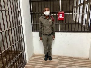 พบ ร.ต.ท.สนอง เสนาช่วย สิบเวร อยู่ปฏิบัติหน้าที่ ห้องควบคุมมั่นคงแข็งแรง แสงสว่างเพียงพอ