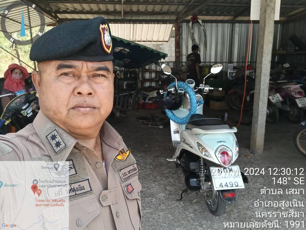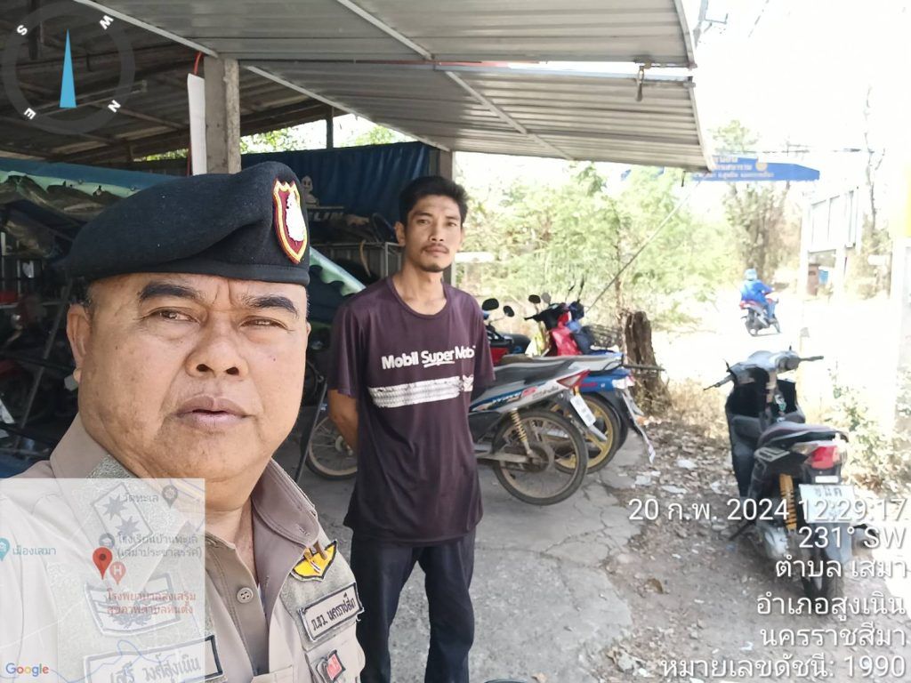 วันที่ 20 ก.พ.2567เวลา 12.48 น.ร.ต.ท.เสรี วงศ์สูงเนิน รอง สว.(ป.)สภ.สูงเนิน สน.106 ว.4 ร้านซ่อม จยย.”อู่ช่างแหลม” สามแยกหน้าโรงเรียนบ้านทะเล”เสมาประชาสรรค์”