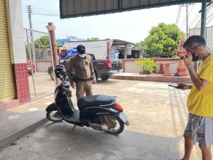 ตรวจสอบแล้วเป็นรถ จยย.ยี่ห้อฮอนด้า สกู๊ปปี้ สีดำ ทะเบียน 1 กค.2302 นม. จึงนำมาเก็บรักษาไว้เพื่อตรวจสอบต่อไป