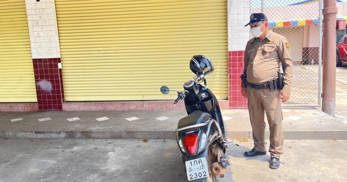 ตรวจสอบแล้วเป็นรถ จยย.ยี่ห้อฮอนด้า สกู๊ปปี้ สีดำ ทะเบียน 1 กค.2302 นม. จึงนำมาเก็บรักษาไว้เพื่อตรวจสอบต่อไป