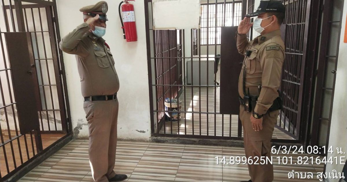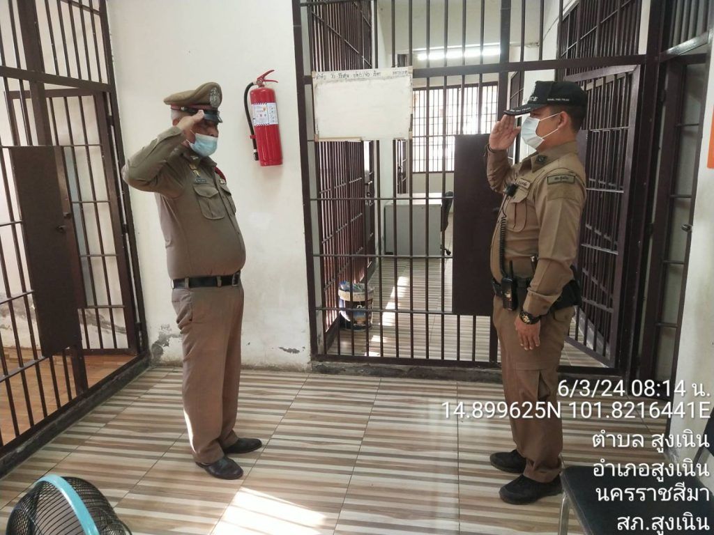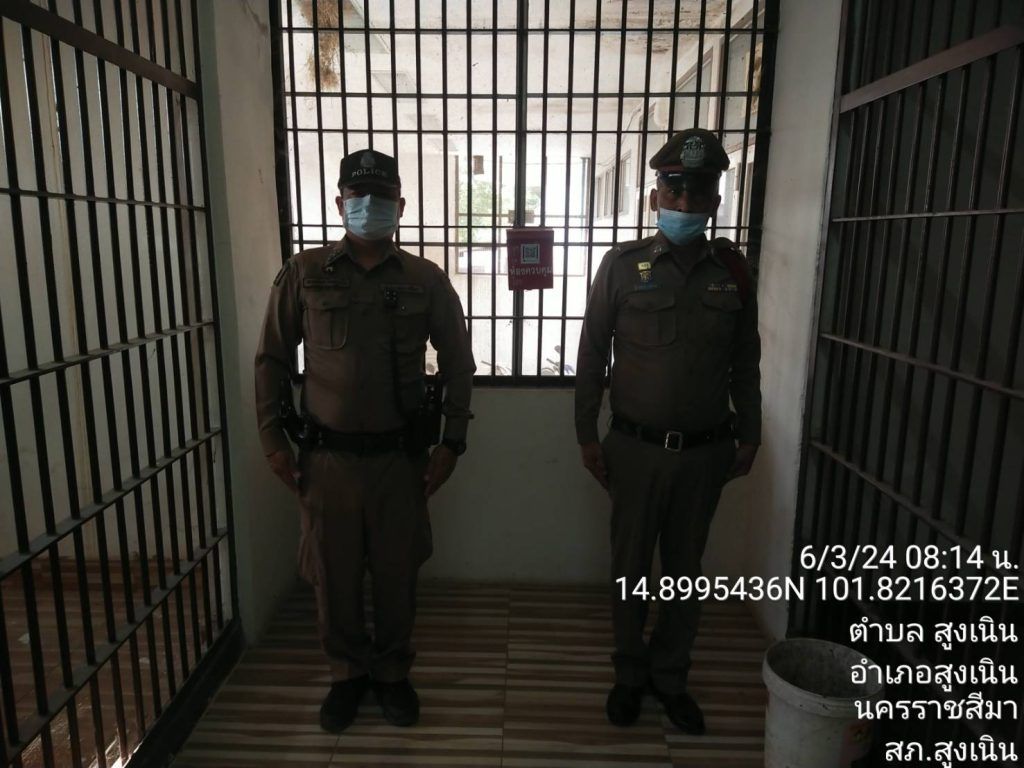 วันที่ 6 มี.ค.2567 เวลา 08.20 น.สูงเนิน 2-0 ตรวจห้องควบคุม สภ.สูงเนิน พบ ร.ต.ต.ชัยณรงค์ สุทธากรณ์ สิบเวร แต่งเครื่องแบบเรียบร้อย อยู่ปฏิบัติหน้าที่ รายงานมีผู้ต้องหาอยู่ในความควบคุม เป็นชาย 2 คน เหตุการณ์ทั่วไปปกติ ร่วมกันตรวจสภาพห้องควบคุม พบว่า สะอาด มั่นคงแข็งแรง แสงสว่างเพียงพอ