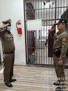 พบ ร.ต.ต.ชัยณรงค์ สุทธากร แต่งเครื่องแบบเรียบร้อยอยู่ปฏิบัติหน้าที่ รายงานมีผู้ต้องหาอยู่ในความควบคุมเป็นชาย 2 คน หญิง 1 คน เหตุการณ์ทั่วไปปกติ ร่วมกันตรวจสภาพห้องควบ พบว่า มีความมั่นคงแข็งแรง แสงสว่างเพียงพอ สะอาด เรียบร้อย