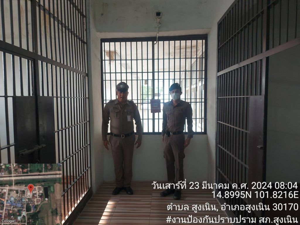 สภ.สูงเนิน วันที่ 23 มี.ค.2567เวลา08.10น.ร.ต.อ.ถิรายุ ปวีณ์วัฒน์ รอง สวป.ฯสูงเนิน 2-0 ตรวจห้องควบคุมผู้ต้องหา พบสิบเวรอยู่ปฏิบัติหน้าที่ ห้องควบคุมมั่นคงแข็งแรง แสงสว่างเพียงพอ ไม่มีผู้ต้องหาชายในความควบคุม – คน ผู้ต้องหาหญิง-คน