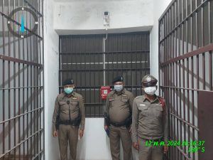 พบ ร.ต.ท.สนอง เสนาช่วย สิบเวร อยู่ปฏิบัติหน้าที่ ห้องควบคุมมั่นคงแข็งแรง แสงสว่างเพียงพอ