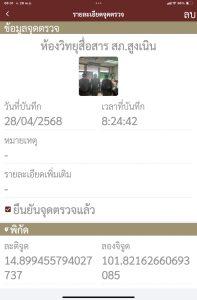 ตรวจห้องสื่อสาร พบ ร.ต.อ.อาทร แจ้งสูงเนิน อยู่ปฏิบัติหน้าที่ พงว. อุปกรณ์การสื่อสารพร้อมใช้งาน,กล้องวงจรปิดใช้งานได้ดี เหตุการณ์ทั่วไปปกติ