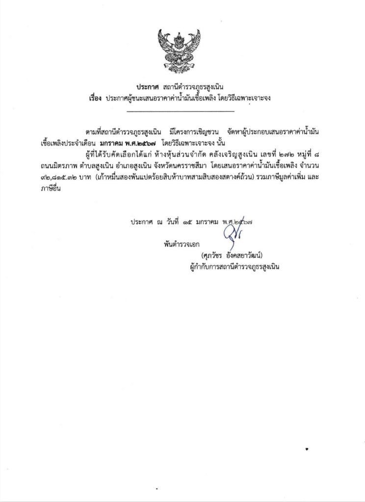 ประกาศจัดซื้อจัดจ้างน้ำมันเชื้อเพลิงเดือน ม.ค.2567