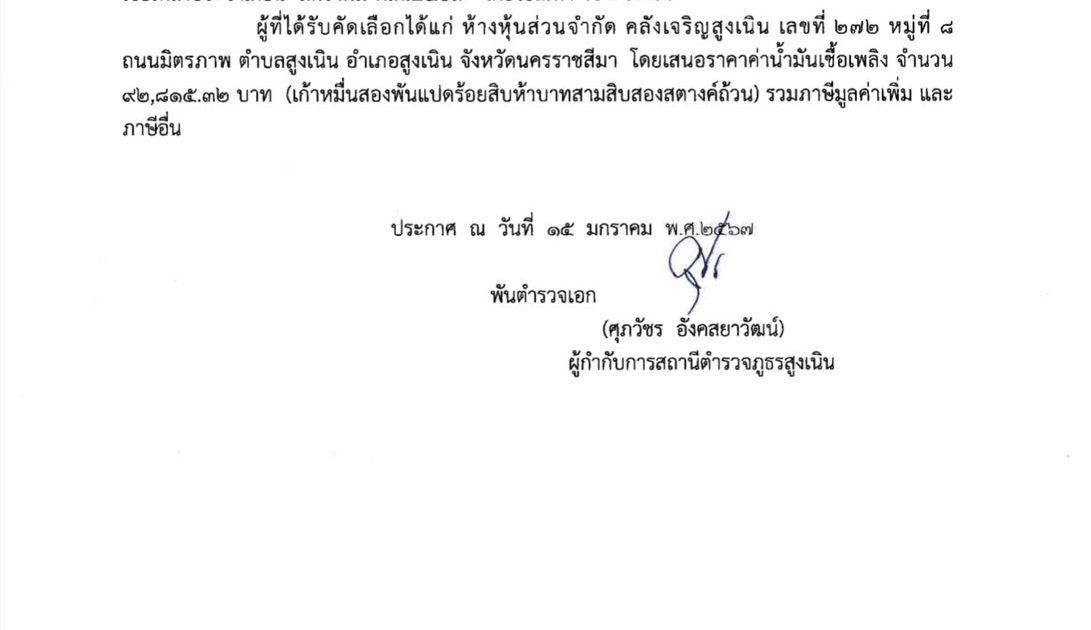 ประกาศจัดซื้อจัดจ้างน้ำมันเชื้อเพลิงเดือน ม.ค.2567