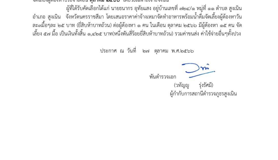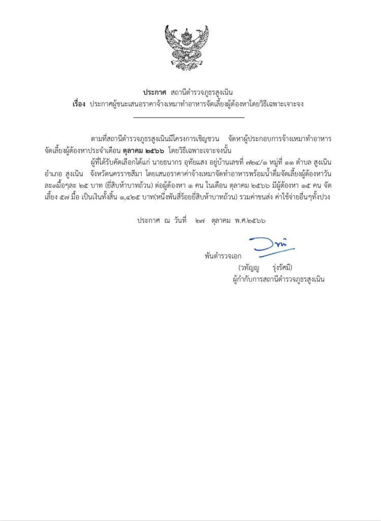 ประกาศจัดซื้อจัดจ้างอาหารจัดเลี้ยงผู้ต้องหา เดือนต.ค.2566