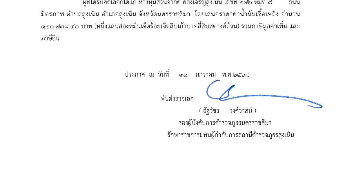 ประกาศผู้ชนะประมูลค่าน้ำมันเชื้อเพลิง เดือนมกราคม 2568