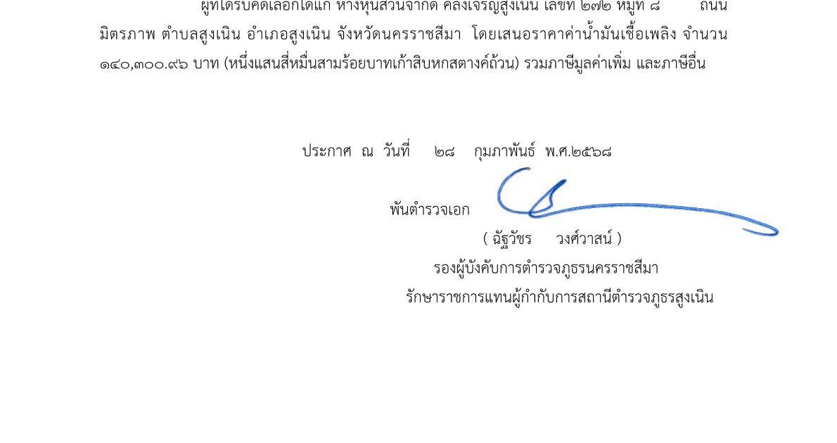 ประกาศผู้ชนะประมูลค่าน้ำมันเชื้อเพลิง เดือนกุมภาพันธ์ 2568