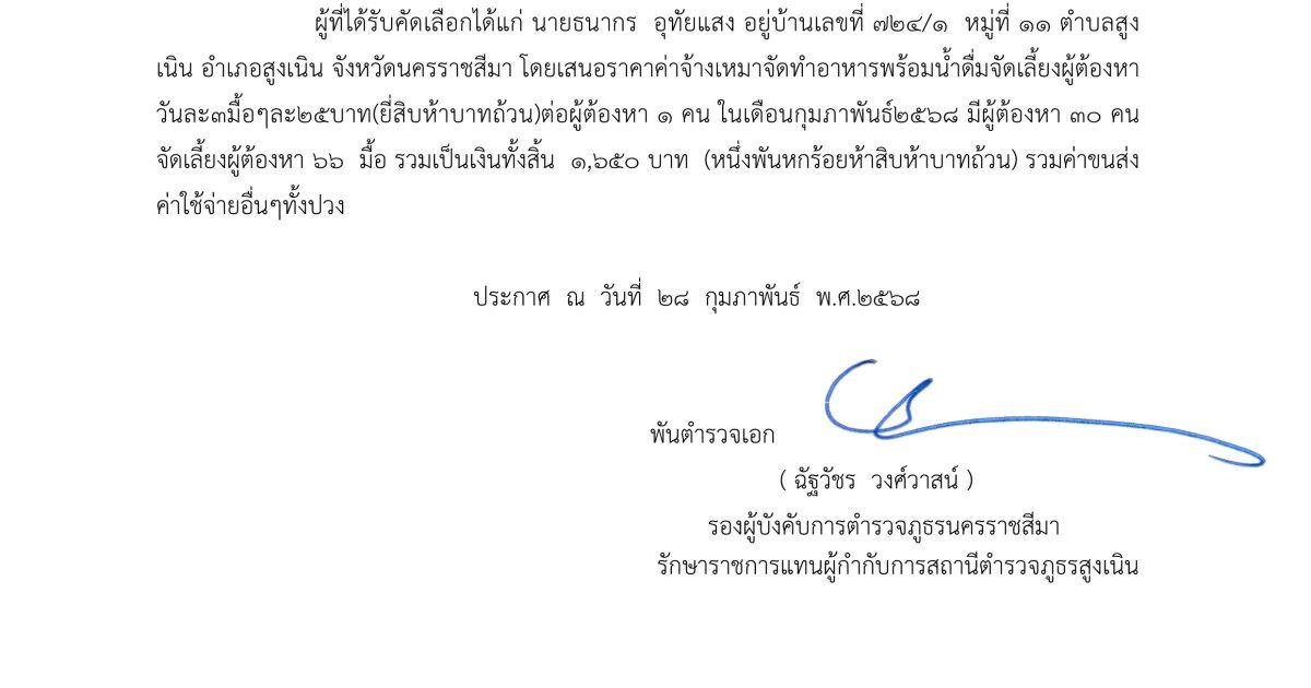 ประกาศผู้ชนะประมูลทำอาหารจัดเลี้ยงผู้ต้องหา เดือน กุมภาพันธ์ 2568