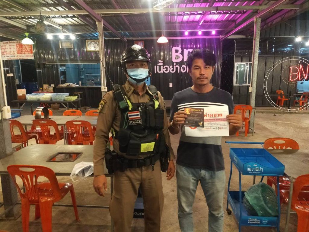 วันที่ 24 ก.พ.2567 เวลา 00.01-02.00 น.ด.ต.สิทธิศักดิ์ เทียมญาติ ผบ.หมู่(ป)สภ.สูงเนิน สายตรวจ เขต3 ว.4 ประชาสัมพันธ์เกี่ยวกับการงดจำหน่ายสุราและเครื่องดื่มแอลกอฮอลั ร้าน