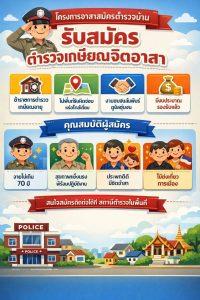 ประชาสัมพันธ์ใบสมัคร “ตำรวจเกษียณจิตอาสา”เพื่อสนับสนุนภารกิจสำนักงานตำรวจแห่งชาตื ในการดูแลความสงบเรียบร้อยและป้องกันอาชญากรรม