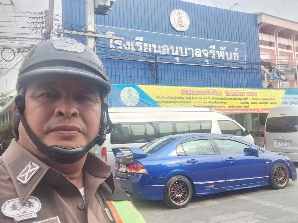ร.ต.ท.สมบัติ อัคเสริญ รอง สว.(ป) สภ.สูงเนิน ปฏิบัติหน้าที่ร้อยเวรจราจร (สน.60)
