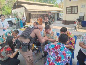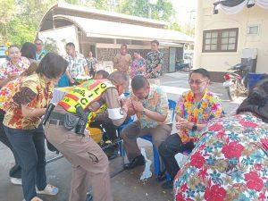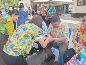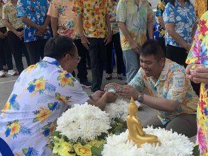 พร้อมร่วมรดน้ำขอพรท่านนายอำเภอและหัวหน้าส่วนราชการ ณ โดมเทศบาลสูงเนิน
