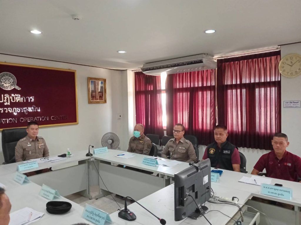 สรายุทธ ทรายตะคุ สว.สส.ฯ,พ.ต.ต.ภูมิรัฐ พิสุทธิ์คุณวุฒิ สว.ชป.ฯและพ.ต.ท.วศิลาวุธ วงศ์ประชา สว.อก. ร่วมประชุม ณ ห้อง ศปก.สภ.สูงเนิน
