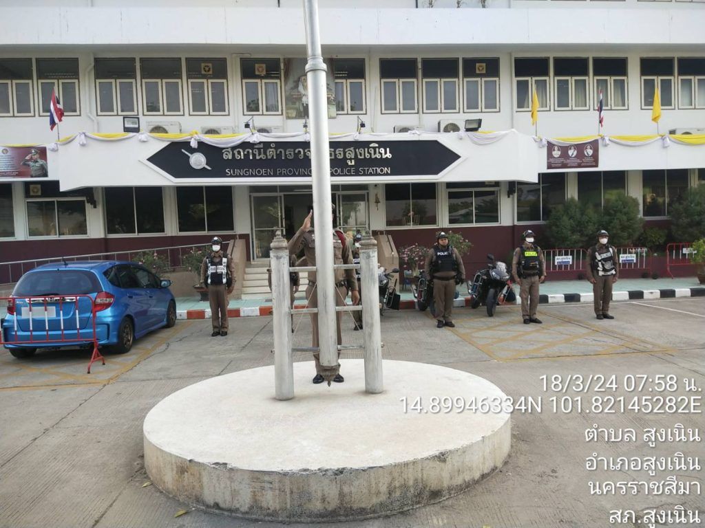 สภ.สูงเนิน ภ.จว.นครราชสีมา วันที่ 18 มี.ค. 2567 เวลา 08.00 น. ร.ต.อ.ชูศักดิ์ รัตนพันธ์ รอง สวป.สภ.สูงเนิน