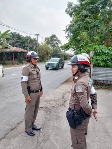 สภ.สูงเนิน ภ.จว.นครราชสีมา วันนี้ 3 พ.ค.2567 เวลา 15.20 น. ร.ต.อ.ไพฑูรย์ ทิพย์ขุนทด รอง สวป.ฯปฏิบัติหน้าที่ร้อยเวรจราจร (สน.60) เรียกแถวสายตรวจจราจร ชี้แจงภารกิจ ตรวจอุปกรณ์ ความพร้อมเครื่องแต่งกาย ก่อนออกปฏิบัติหน้าที่