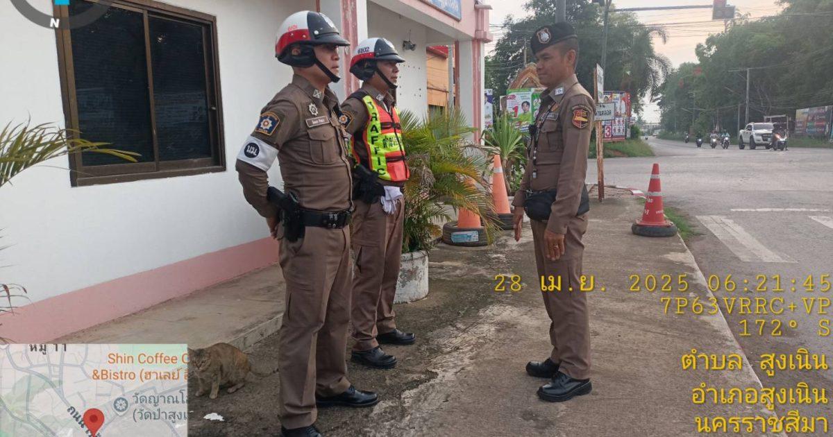 วันนี้ 28 เมษายน 2568 เวลา 06.00 น. ร.ต.ท.สมบัติ อัคเสริญ รอง สว.(ป) สภ.สูงเนิน ได้เรียกแถวสายตรวจจราจร ประชุมชี้แจงภารกิจก่อนปล่อยแถวออกปฏิบัติหน้าที่ ดังนี้