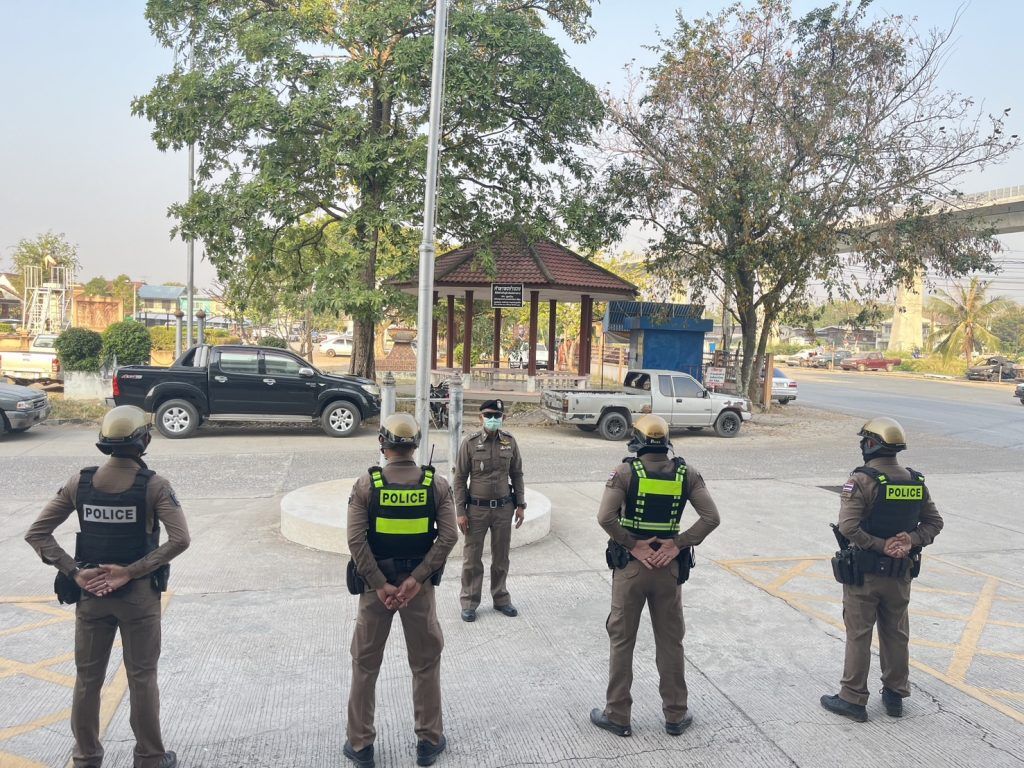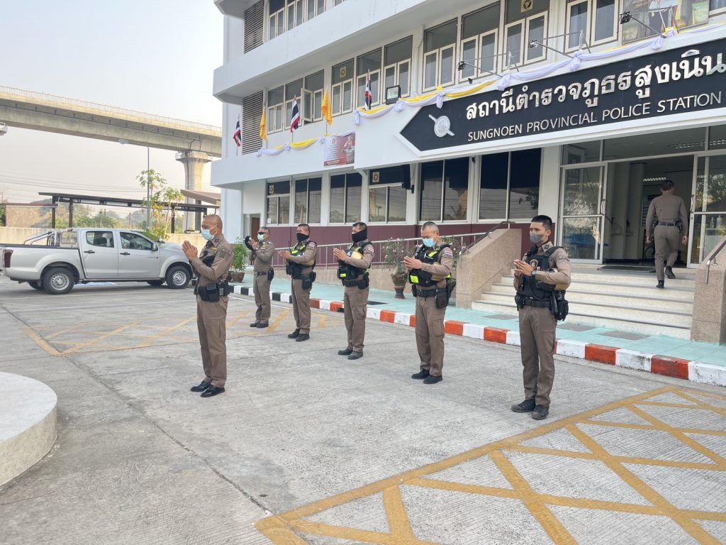วันที่ 9 ก.พ.2567 เวลา 07.45 น.นำโดย พ.ต.ท.พิทักษ์ วงศ์อาจ รอง ผกก.ป.ฯ,พ.ต.ท.ญาณวุฒิ ชินทุมพงษ์ สวป.ฯ พ.ต.ต.ภูมิรัฐ พิสุทธ์คุณวุธน์ สวป.(ชส.)ฯ,ร.ต.ท.อรรถสิทธิ์ พฤกษามาลา รอง สวป.ฯ/ร้อยเวร20 เรียกแถวสายตรวจรถยนต์,รถจักรยานยนต์ มาเพื่อเคารพธงชาติ,สวดมนต์ไหว้พระ,กล่าวอุดมคติตำรวจ,ประชุมชี้แจงและกำชับการปฏิบัติก่อนออกปฏิบัติหน้าที่ ตรวจจำนวน เครื่องแต่งกาย ทรงผม พร้อมอุปกรณ์ อาวุธปืน วิทยุสื่อสาร ยานพาหนะพร้อมใช้งาน อบรมแนวทางการปฏิบัติยุทธวิธีและกำชับการปฏิบัติดังนี้