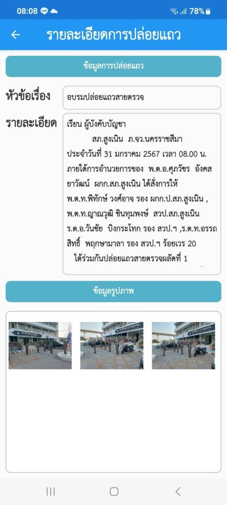 -ตรวจจำนวน สภาพความพร้อมของกำลังพล อุปกรณ์ประจำกาย และอุปกรณ์ประจำรถ พร้อมลงข้อมูลในระบบ POLICE 4.0