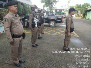 ได้เรียกแถวสายตรวจ เพื่อเคารพธงชาติพร้อมอบรมปล่อยแถวสายตรวจและชี้แจงข้อราชการ ข้อสั่งการ