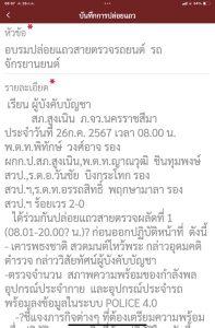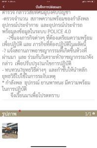-ตรวจจำนวน สภาพความพร้อมของกำลังพล อุปกรณ์ประจำกาย และอุปกรณ์ประจำรถ พร้อมลงข้อมูลในระบบ POLICE 4.0