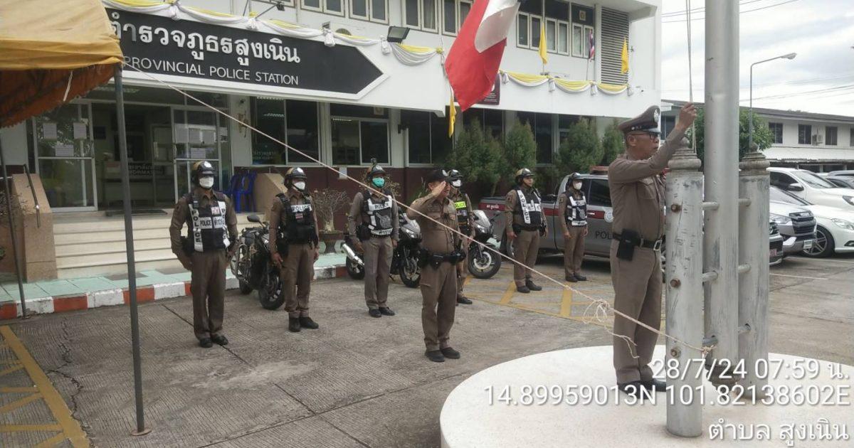 ได้เรียกแถวสายตรวจ เพื่อเคารพธงชาติพร้อมอบรมปล่อยแถวสายตรวจและชี้แจงข้อราชการ ข้อสั่งการ