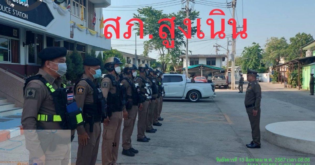 ประจำวันที่ 13 ส.ค. 2567 เวลา 08.00 น. พ.ต.อ.ศุภวัชร อังคสยาวัฒน์ ผกก.สภ.สูงเนิน,พ.ต.ท.พิทักษ์ วงศ์อาจ รองผกก.ป.สภ.สูงเนิน,พ.ต.ท.ญาณวุฒิ ชินทุมพงษ์ สวป.,ร.ต.อ.วันชัย บิงกระโทก รอง สวป.ฯ,ร.ต.ท.อรรถสิทธิ์ พฤกษามาลา รองสวป.ฯ ร้อยเวร 2-0